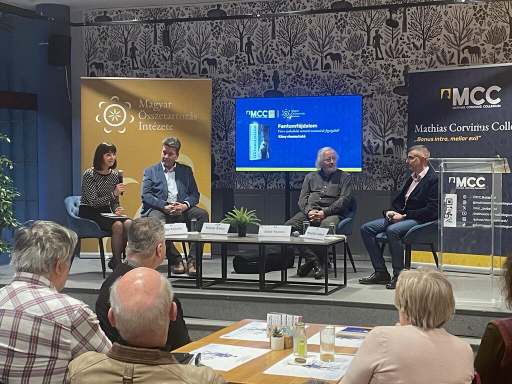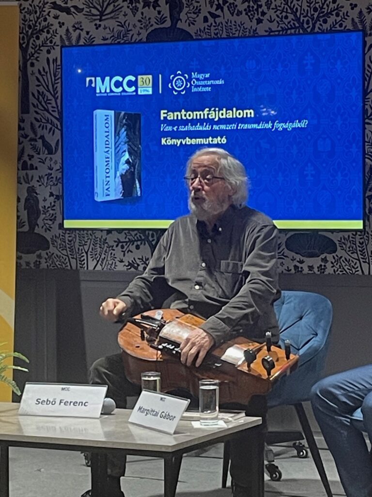 Margittai Gábor Fantomfájdalom (Van-e szabadulás nemzeti traumáink fogságából?) című könyvének bemutatója kapcsán beszélgetett a szerzővel, valamint Sebő Ferenc népzenekutatóval, Mórocz Gábor történésszel Nagy Katalin az MCC Magyar Összetartozás Intézetében.
